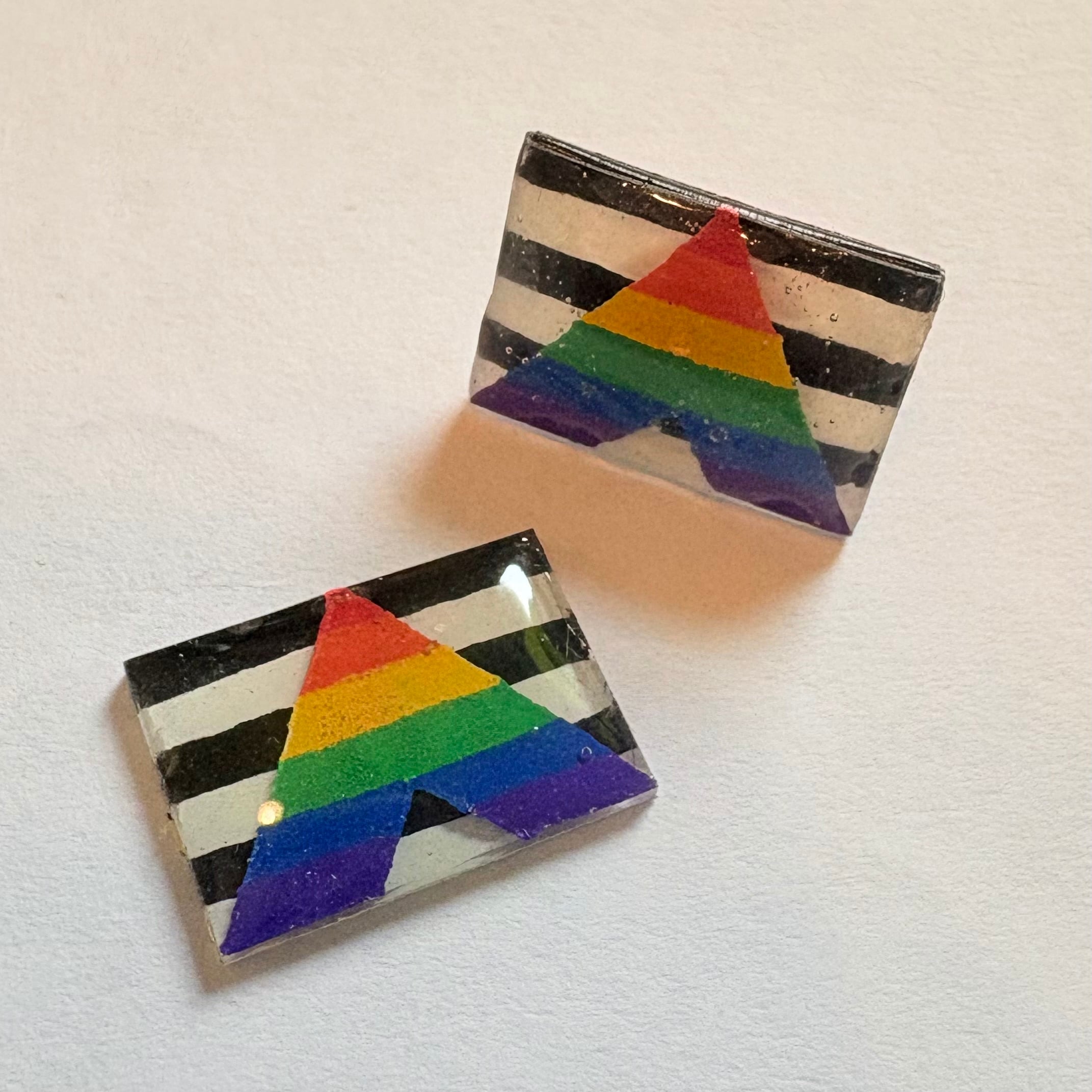 プラ板を使ったちいさなアライフラッグのピンバッジです。