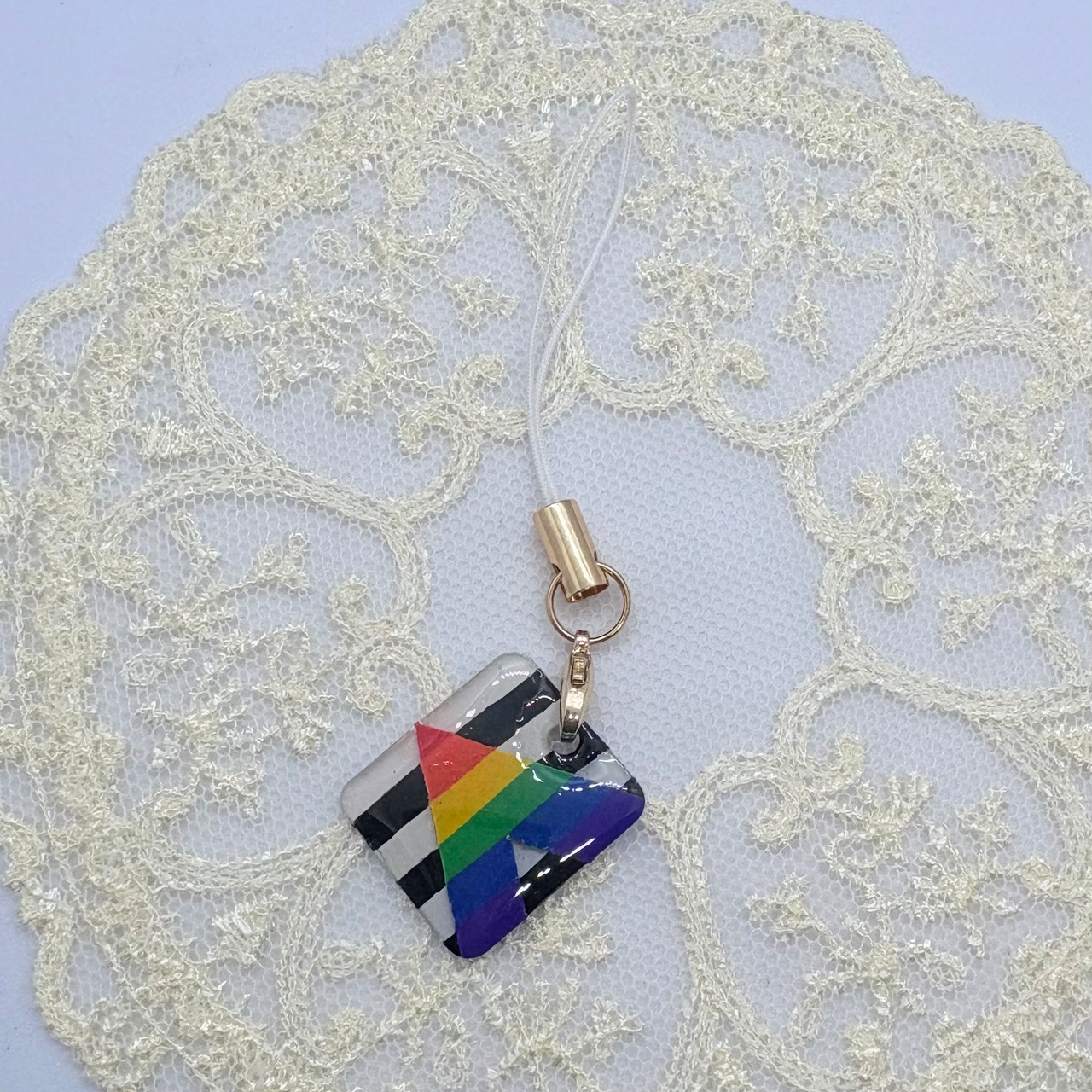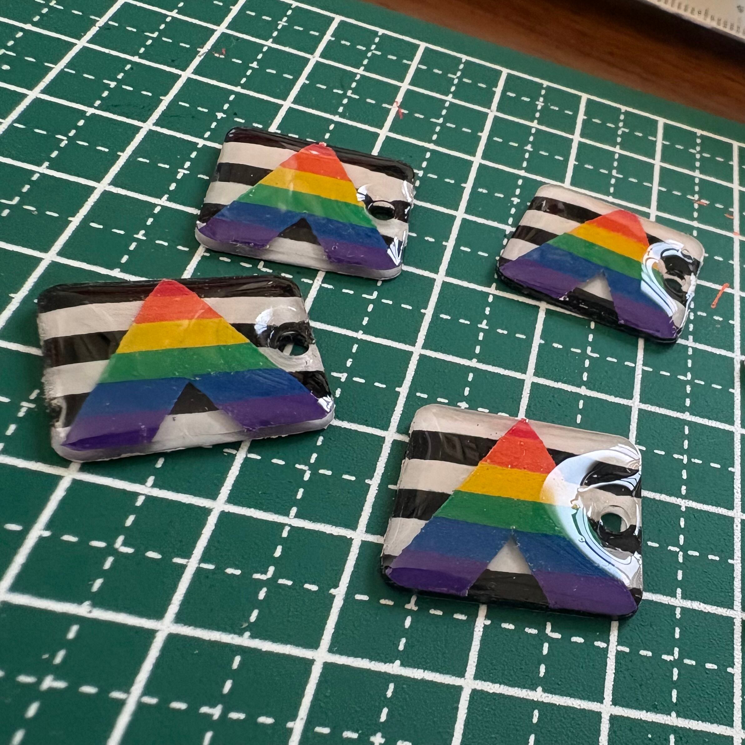 プラ板を使ったちいさなアライフラッグのストラップです。