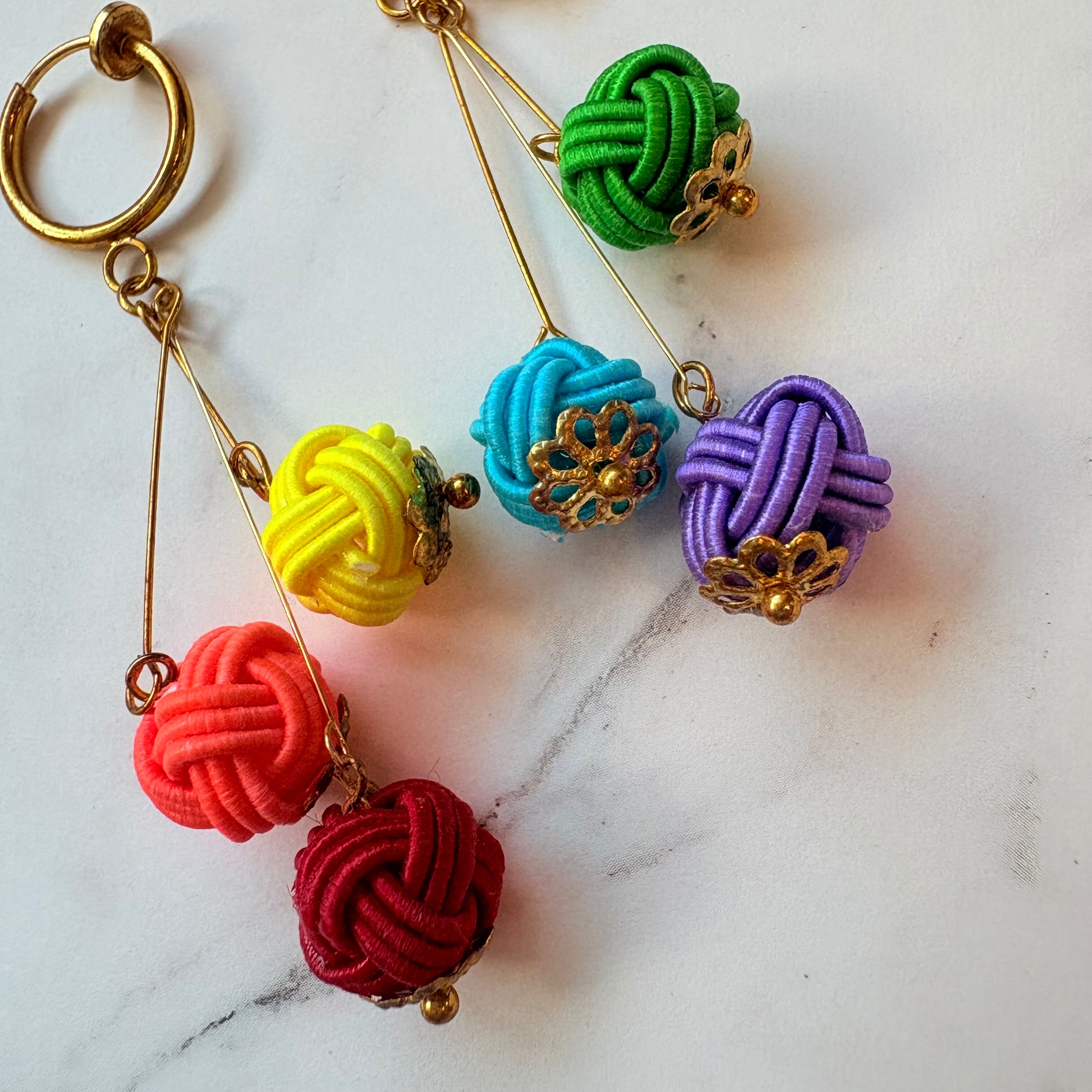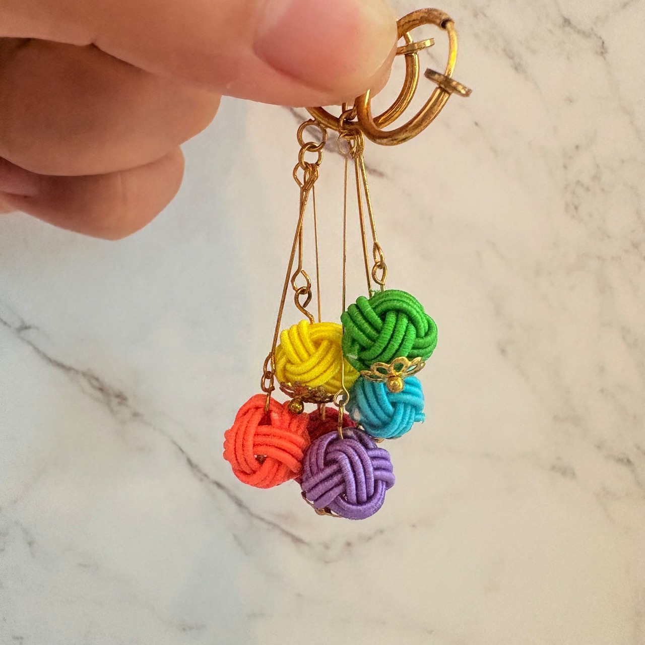 ひとつひとつまんまるに結んだ水引は、両耳につける事でレインボーカラーに。